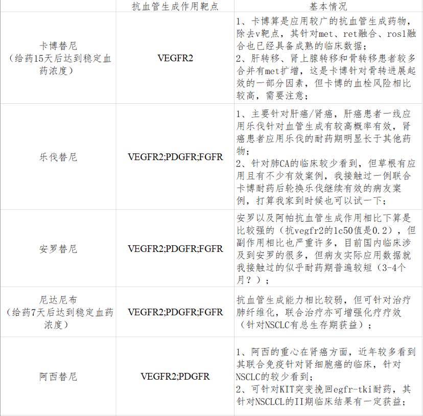 这里想要讨论的小分子TKI抗血管生成药物包括安罗替尼、卡博替尼、乐伐替尼、阿西替尼、尼达尼布五种,其他如凡德他尼、索拉非尼、瑞格菲尼等等暂且按下不表。