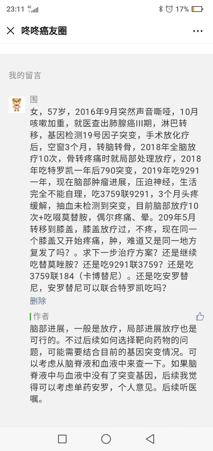3、本帖的靶向耐药联合抗血管生成药物的讨论尤其针对egfr相关突变类型,因为我家开始是这个突变;