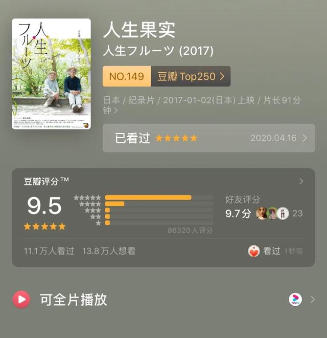 昨天看了一部纪录片,特别喜欢,叫《人生的果实》。迫不及待要和大家推荐啦。(优酷APP可以看)