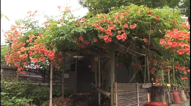 除了蔬菜,还种了好多鲜花,凌霄花傲放的时候,组成一条红色的长廊。