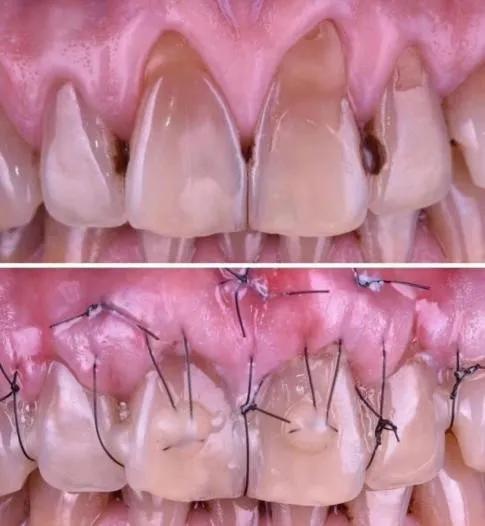 ⑤ 牙周手术牙龈移植:将牙龈组织重新覆盖根面,保护牙根并降低敏感性。如图:
