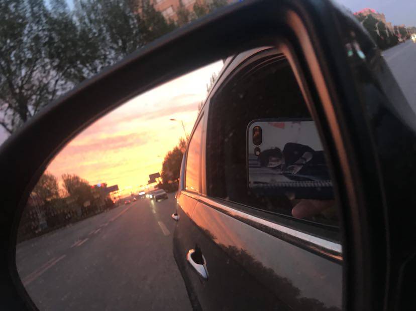看着倒车镜子里的夕阳,心情格外的好,夕阳很美,伙伴们,熬过了治疗要开心每一天呀,只要没有不舒服,我都心情美美的,穿漂亮衣服,吃好吃的,玩好玩的,没有理由不开心呀,每一天都要开心幸福,美美的过,加油哦💪