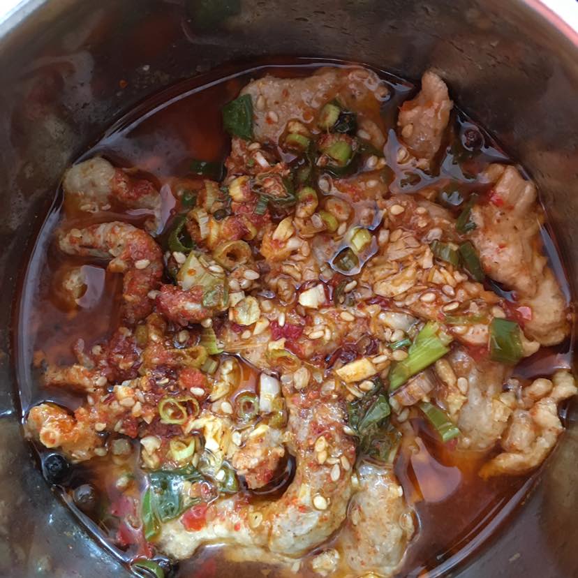 哥们中午回家给儿子做的水煮肉片,我蹭吃喽😄病前特喜欢吃川菜。几乎每周都吃,辣椒顿顿不离餐桌,病后真的收敛很多,有时候想吃真的会流口水😄哥们给我做的不是很辣,微辣。