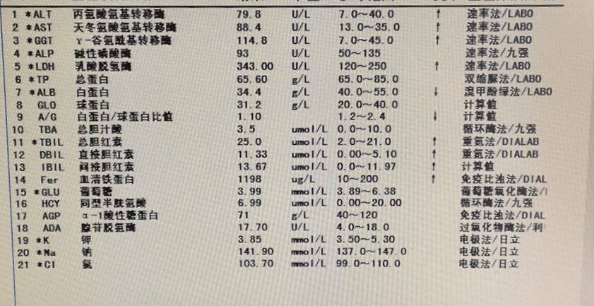 奇怪的是胆红素一直偏高一点,且下降幅度很小。