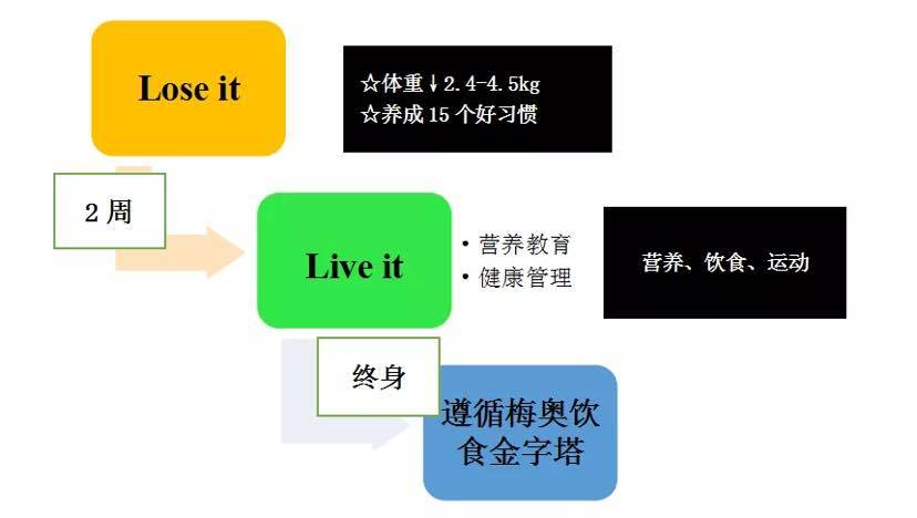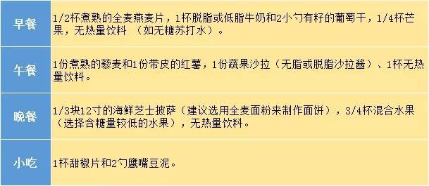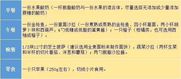 2. 强调总体热量的控制,建议选择低热量密度的食物,对食用盐的摄入没有特别多的限制,在前期饮食习惯的建立中提出尽量避免摄入除天然糖类的其他糖类,对于少量的酒精没有提出强烈的禁止要求。
