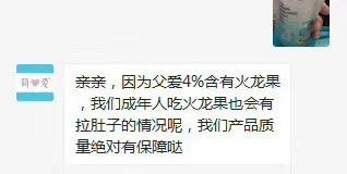 客服对此回应,因产品含有的火龙果成分,可能会导致腹泻,让王女士停止饮用即可解决。
