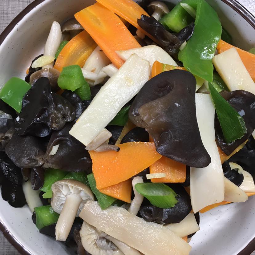 蟹味菇炒黑木耳🥕青椒杏鲍菇