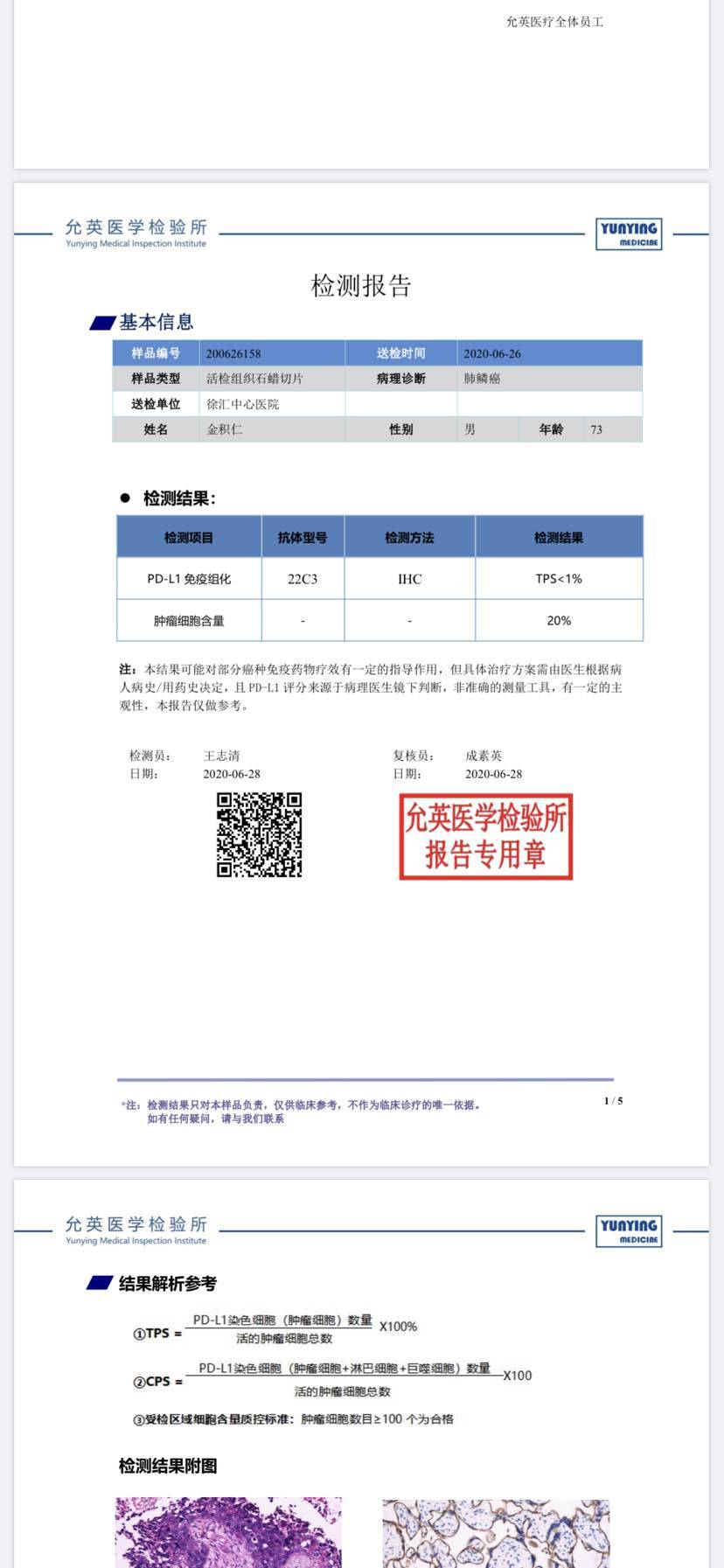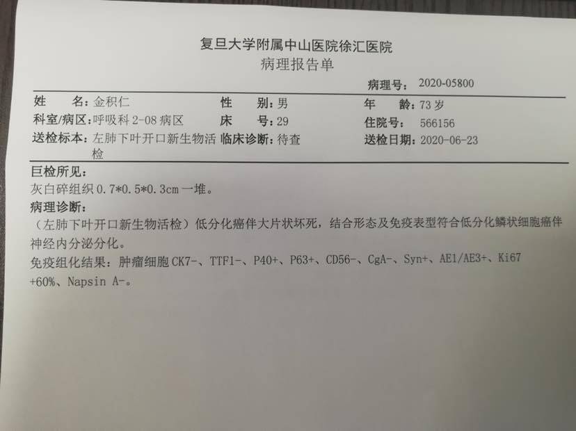 6/25 病理报告出来,鳞癌,抱着一丝希望和不放弃,申请做病理基因检测 同时抽血