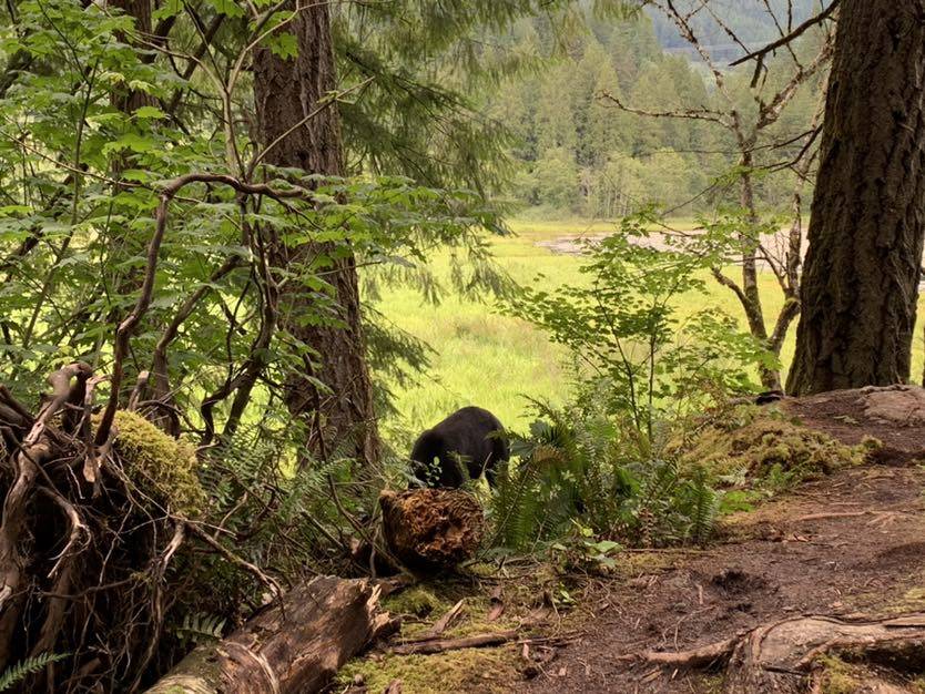 虽然是七月了,天气还是凉凉的. 跟朋友边走边聊, 聊着聊着就跟熊打了个照面😅。本来想打个招呼,可人家底头吃东西,跟本不理我🤣🤣🤣。