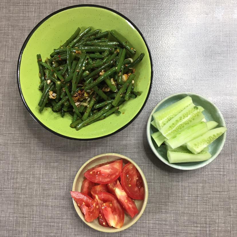 凉拌缸豆角、西红柿🍅黄瓜🥒三种蔬菜