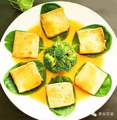 1、白豆腐放入碗中,加入没过豆腐的冷水,放入一点盐,泡上1个小时。并将北豆腐切成8分厚,5厘米×5厘米的块待用。西兰花洗干净后掰成小朵,青菜洗干净。