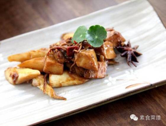 原料:茭白,杏鲍菇,腰果酱,纯素XO酱,生抽,盐,干辣椒,八角,生姜