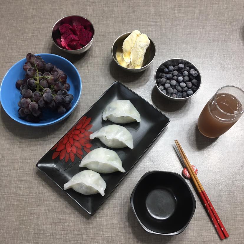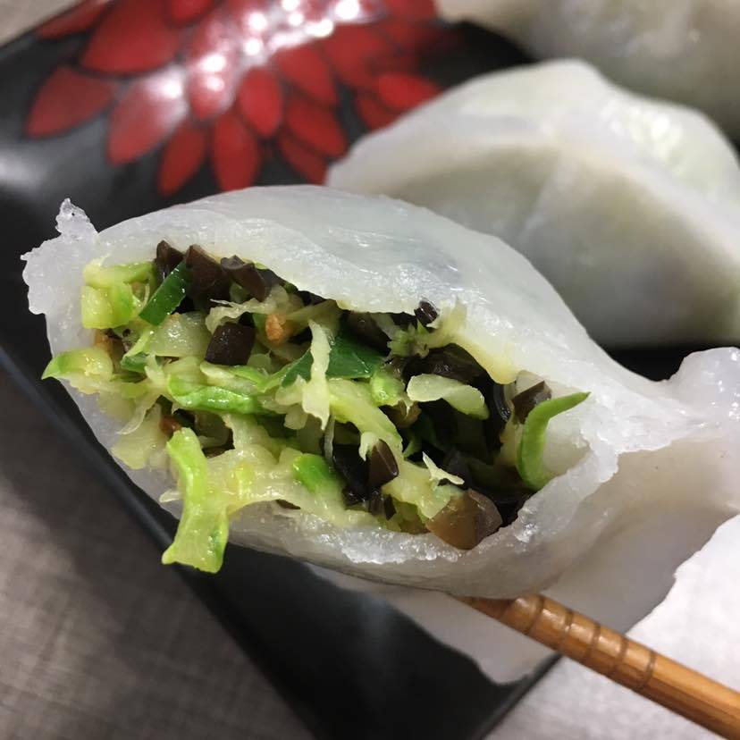 昨天去天津,家里木有啥菜了。只有角瓜,放点黑木耳和虾米做水晶蒸饺,橙粉和木薯粉做面皮。搭配一杯:薏米红豆芡实茯苓水排湿😄