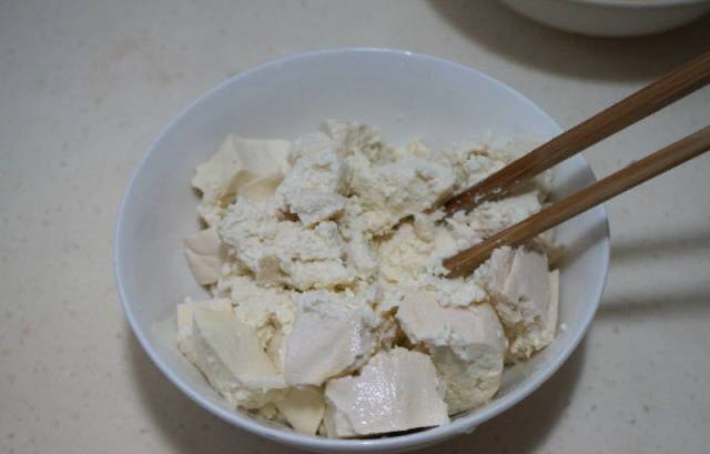 1、将豆腐沥净水分,搅成细泥。