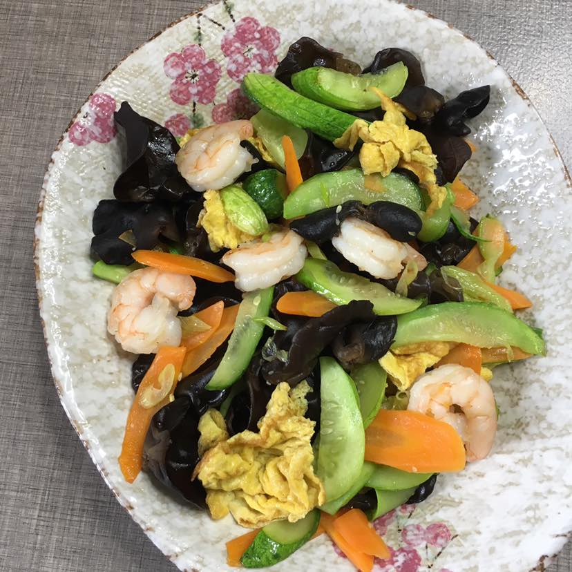 早餐:虾仁木耳炒黄瓜🥒和胡萝卜🥕杂粮馒头和荠菜猪肉包子各种水果,带公司去吃