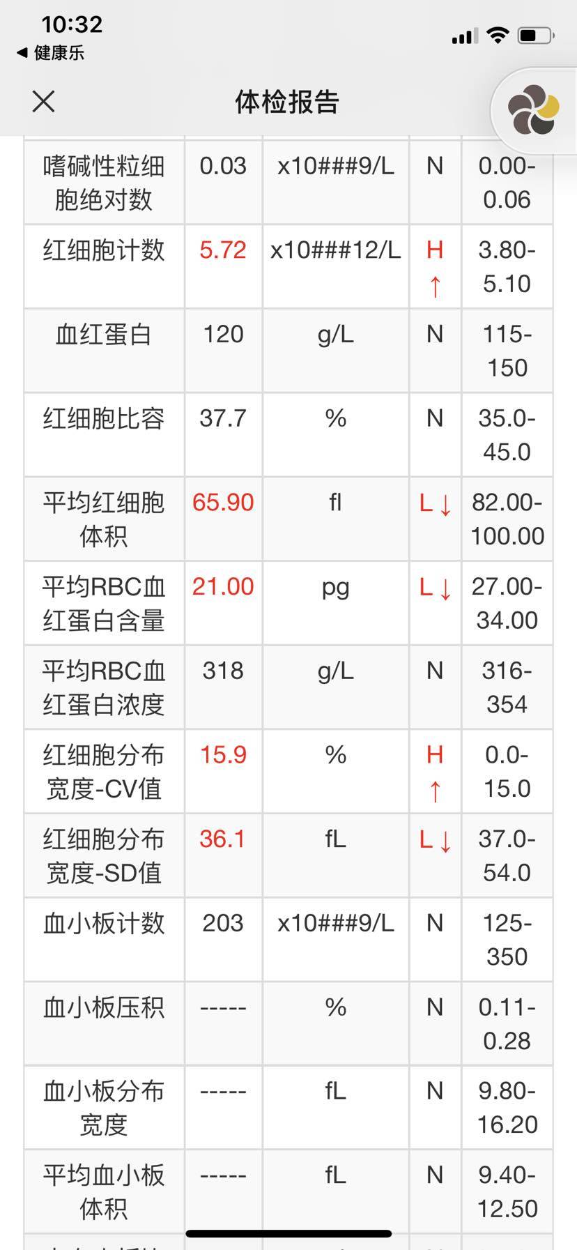 这个机器坏了,血小板下面那块都没有显示。康复期活动量量少也关系到红细胞这块。