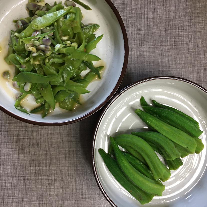 拌扁豆角和白灼秋葵