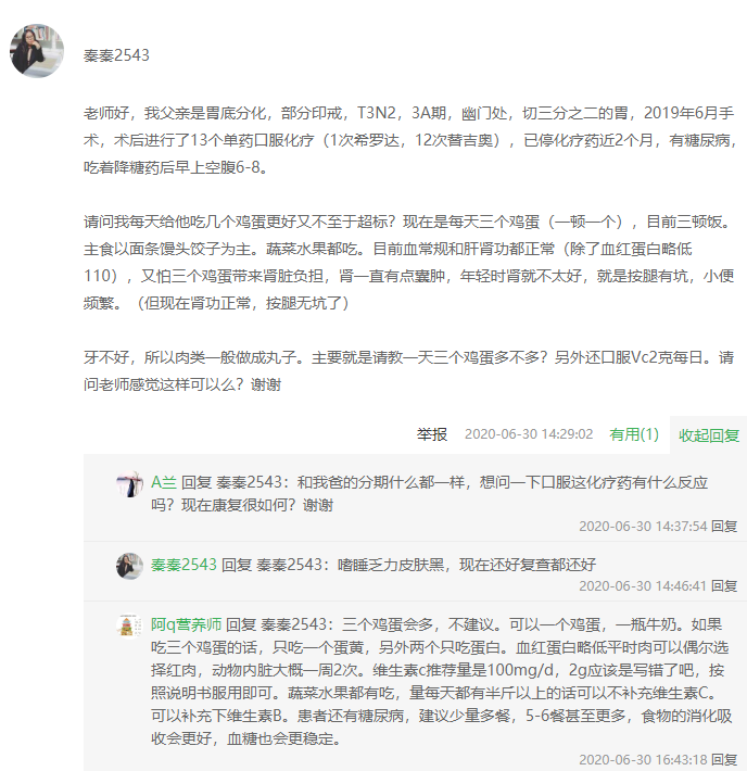 老师您好,我胃癌全切手朮快8个月了,化疗3次后因营养跟不上,造成白蛋白和血小板低,体重严重减轻,停止化疗,我怎么把营养调上去?谢谢