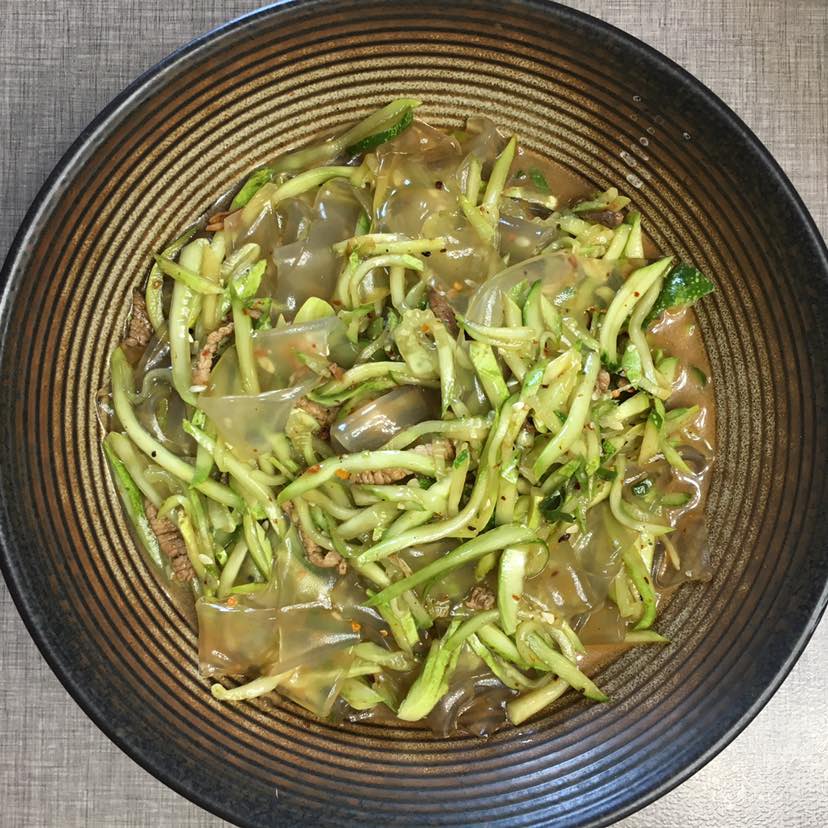 肉丝黄瓜🥒拌绿豆粉皮,天热吃绿豆降火哈😄
