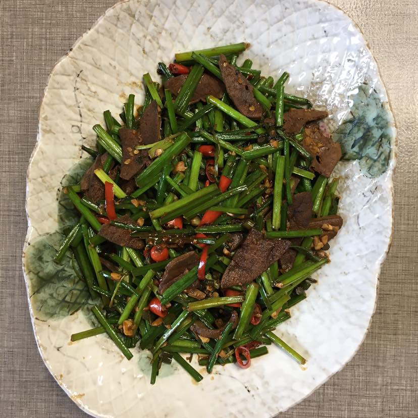 猪肝炒韭薹,哥们喜欢吃猪肝,但是我也不经常做。内脏的东西要少吃,偶尔解解馋还是可以的。尤其是胆固醇高的人最好不吃或者少吃。