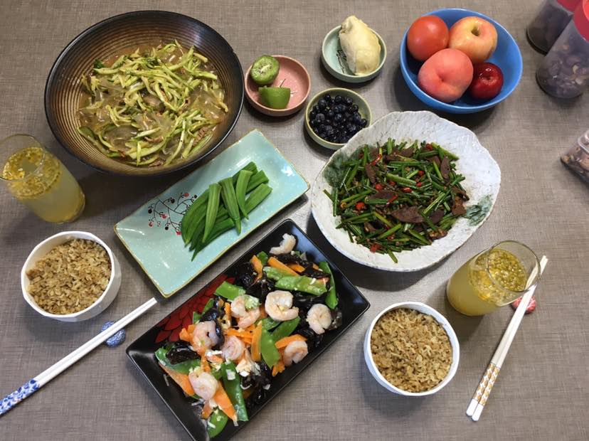 白灼秋葵和青稞苦荞麦白米饭🍚儿子睡懒觉我们先吃。