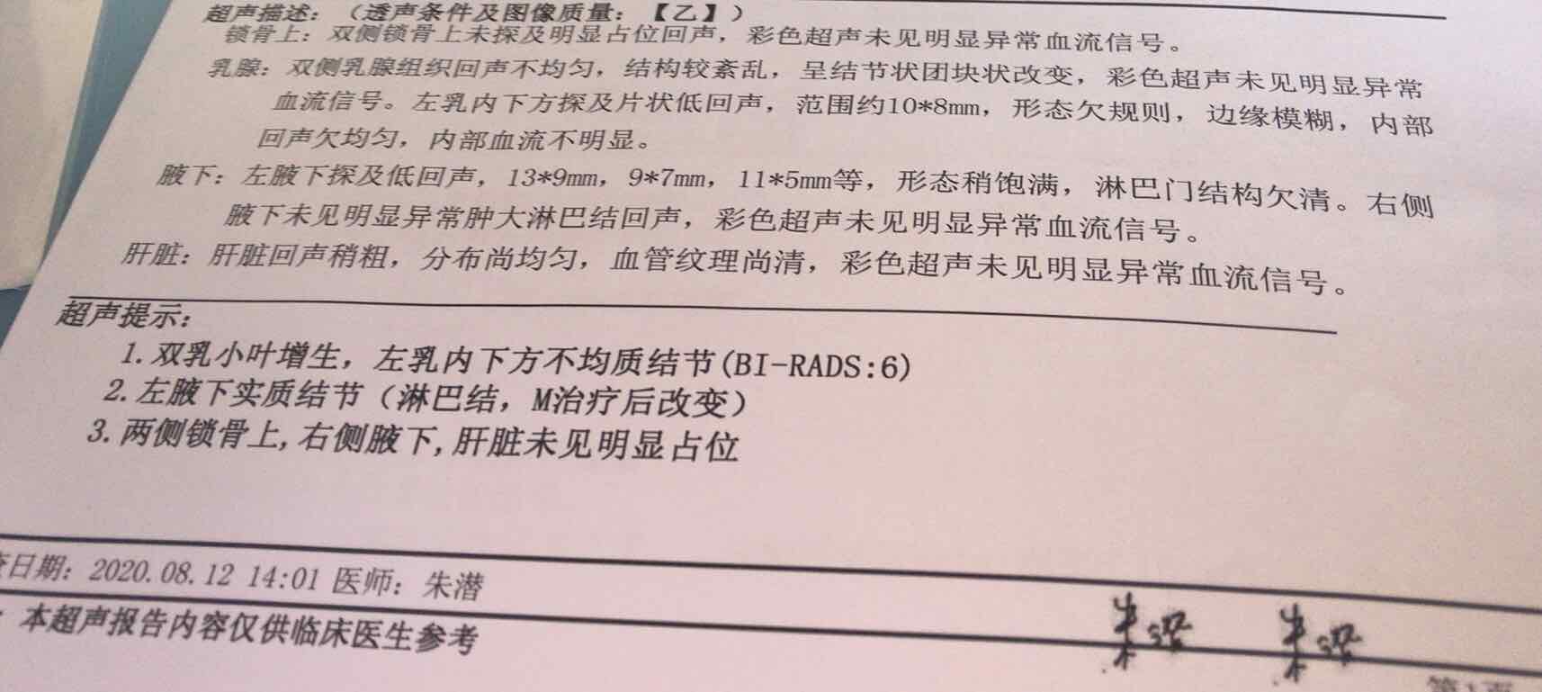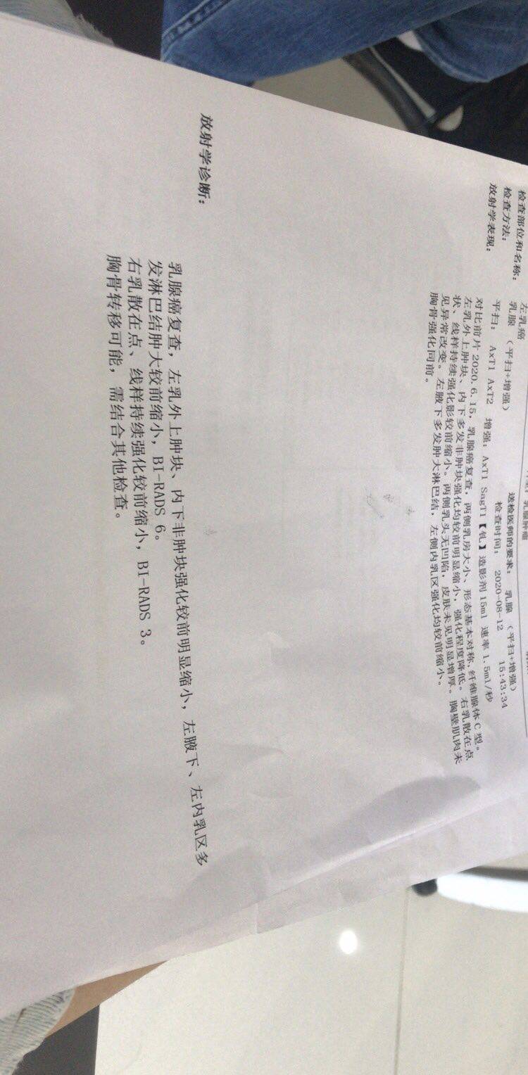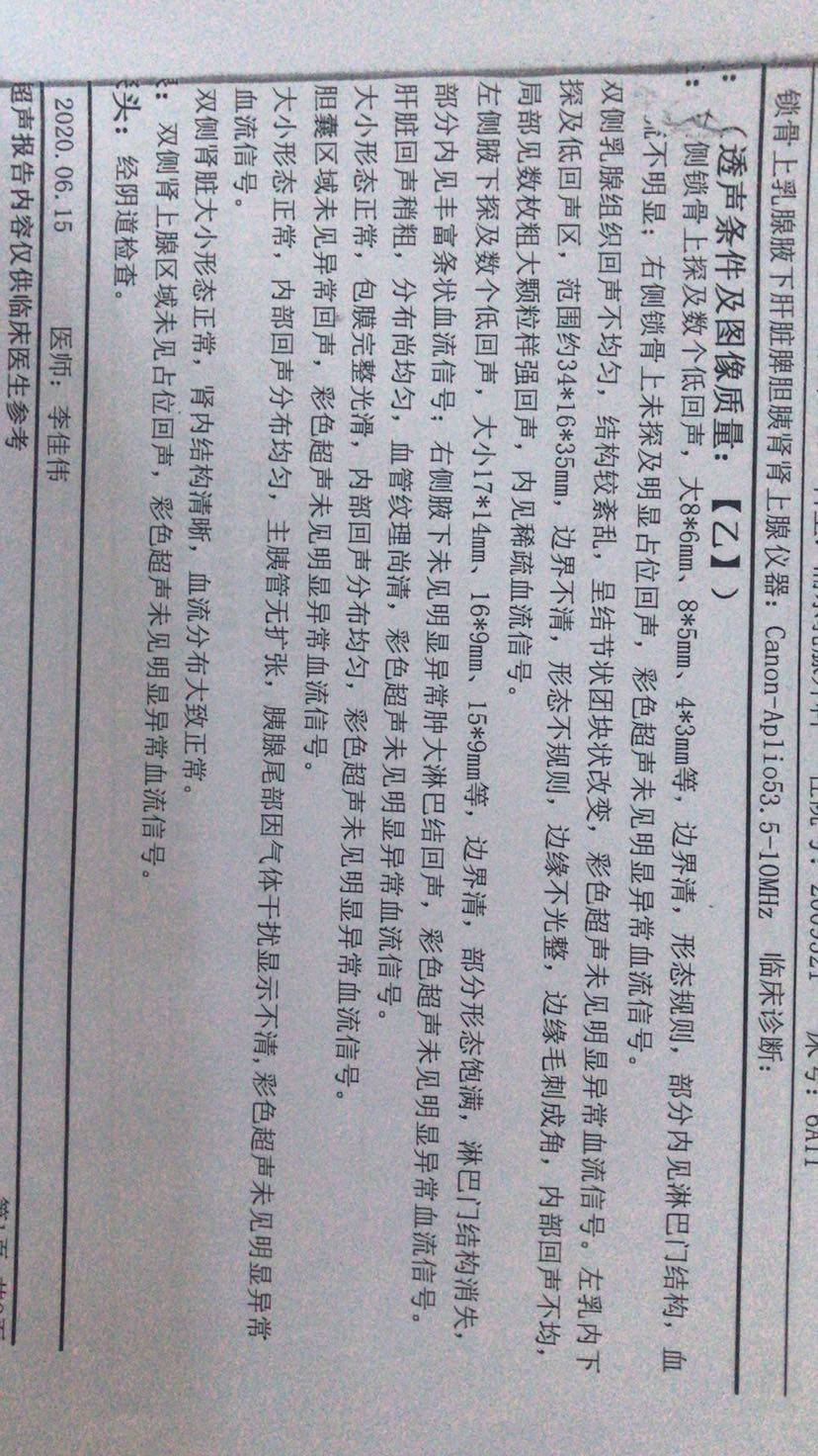 2疗结束了,对比2次的报告,继续化疗,奇怪的是b超显示锁骨淋巴结没有了,医生摸说还有一个,不管了,不管有没有都得继续化疗,希望4疗后肿大的淋巴结可以没有了,希望不要耐药,希望药效可以很好,希望可以活的久一点,再久一点,陪着父母终老,看着孩子长大