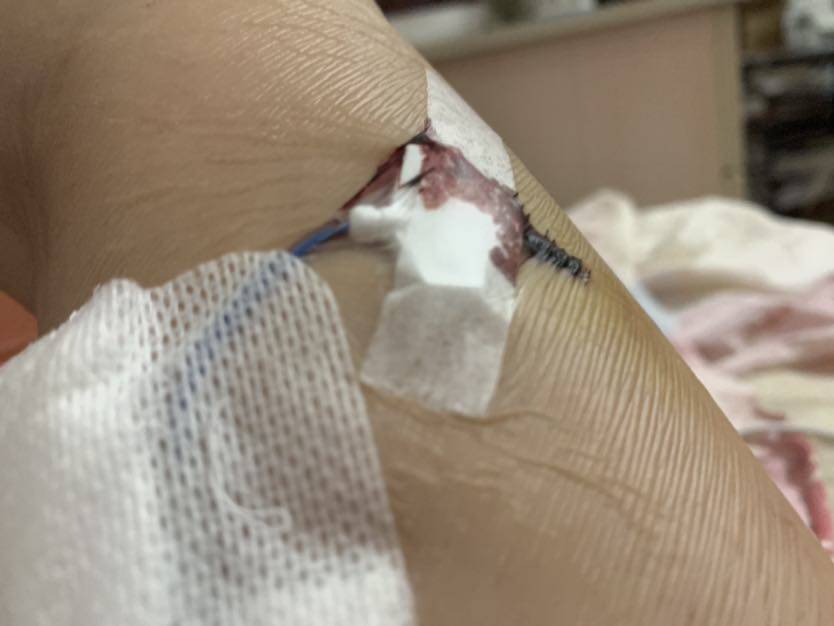 昨天第一疗前先去咨询北京协和的医生看能不能办北京医保的住院,回复我不能,然后就开始排队坐着日间化疗,两种化疗药,还有一管红药水,开始有点迷糊,之后好些了,一共打了3个小时,回家没影响我的食欲,可是下午手麻,我就握球没想到PICC导管渗血,就这样各种问各种咨询,还好血停了,以后要更小心,化疗没啥可怕的,坚强的一关一关闯,终身加油💪
