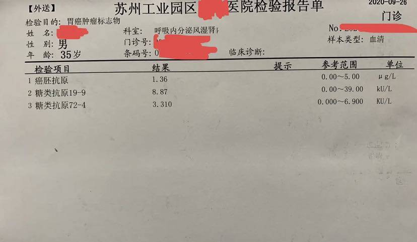 这是PP胃癌术后的第七个年头了,每年都要遵照医嘱做一次复查体检,做好康复期内的各种生理指标健康筛查。每年都是这个时候最紧张焦虑,看到这些报告单,总算是放心了!