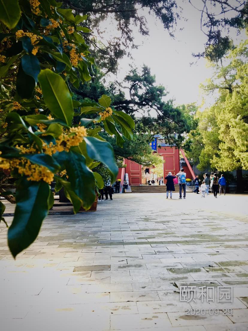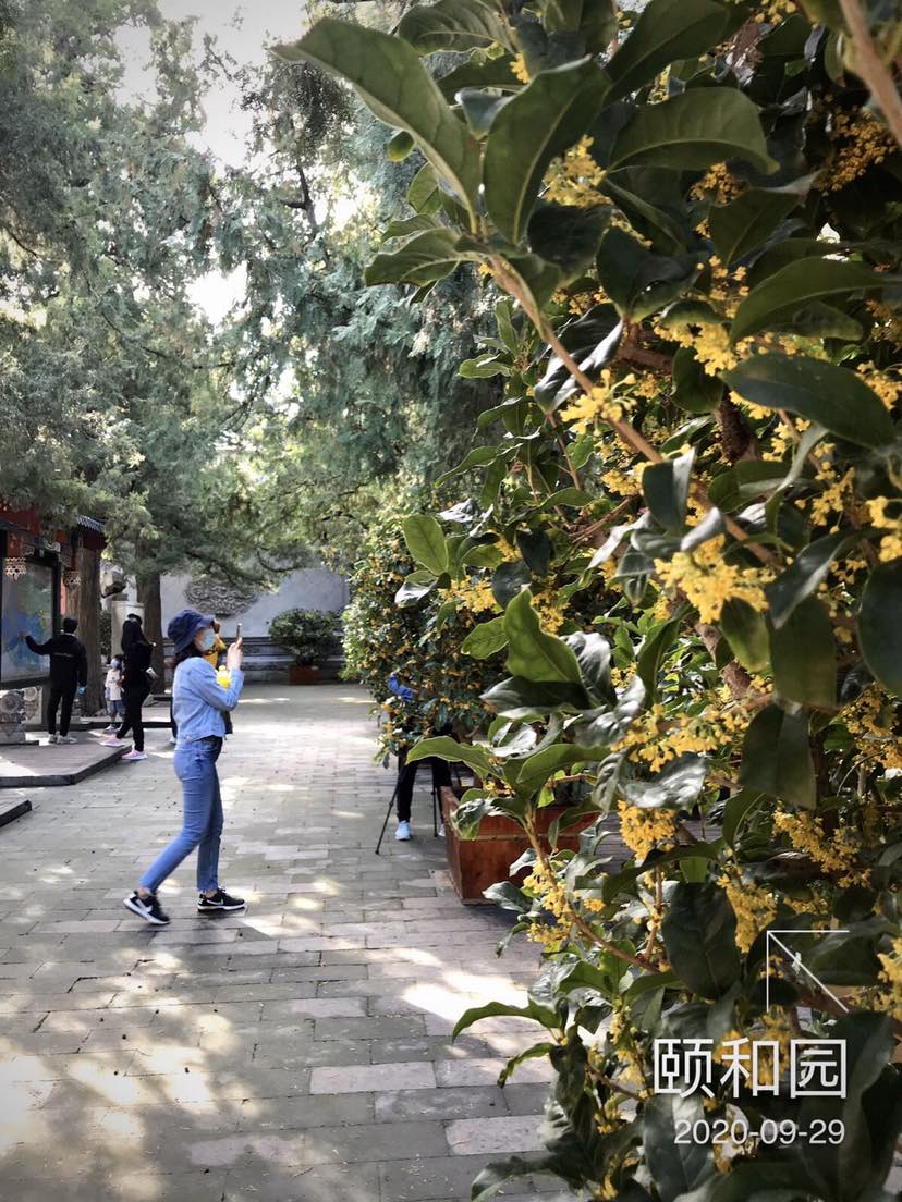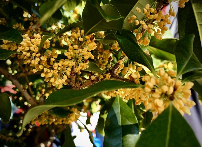 金秋奇蕊漫天香,石径疏荫独步忙。