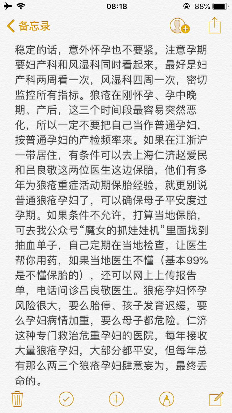 狼疮6年了,本来打算备孕,却意外怀了。检查了各项指标都正常,目前只服用一片甲泼尼龙。医生问我做好心理准备没有,其实我也不清楚我做好心理准备没,我只想健健康康生下来。怀孕真的会导致狼疮复发吗?有经验的可以分享下吗?谢谢。