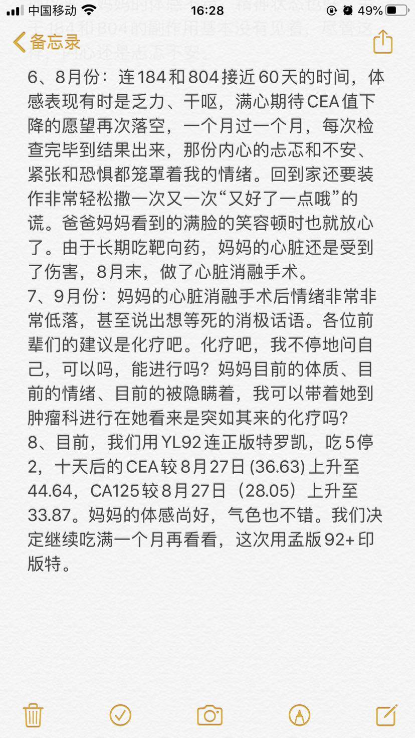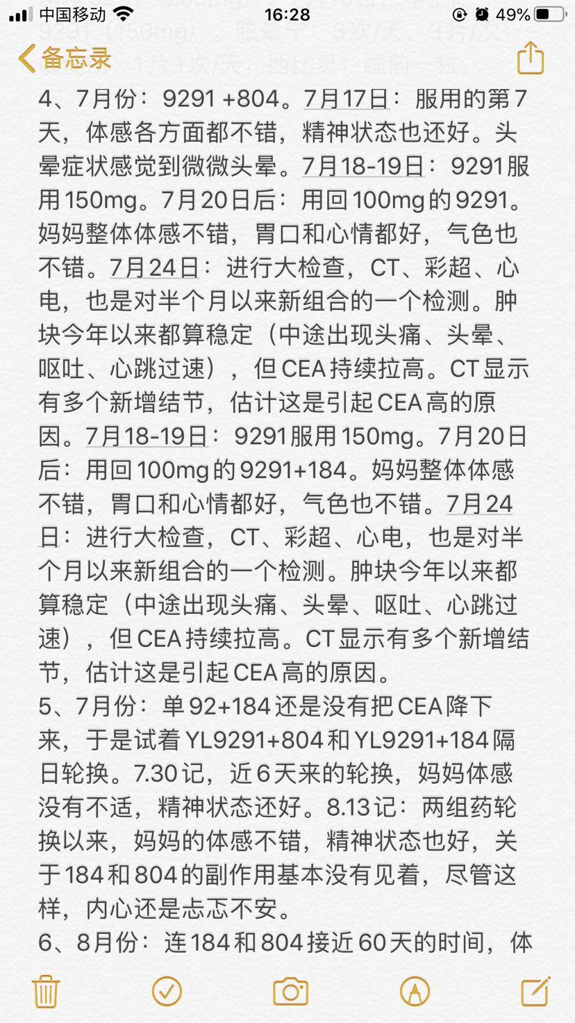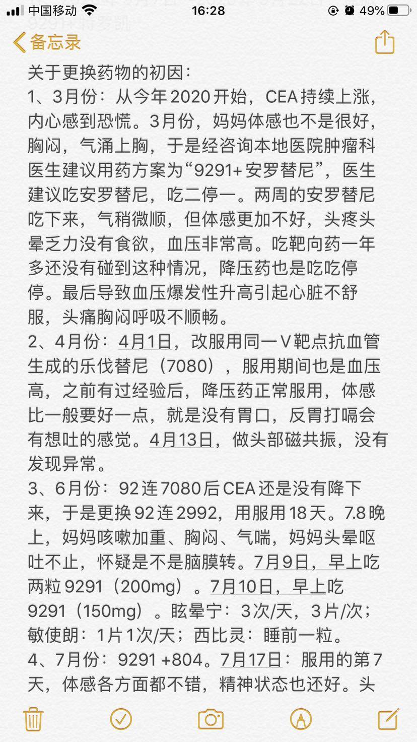 以下是妈妈确诊两周年来的用药记录,求教各位前辈对治疗方案的建议意见,不胜感激。