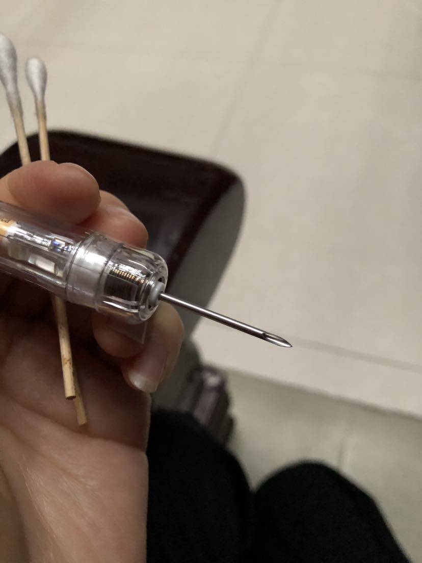 在这里第一次认真看到这个针头,果真很粗,我打三个月一针的,不觉得疼,很快就打完,还是非常佩服你