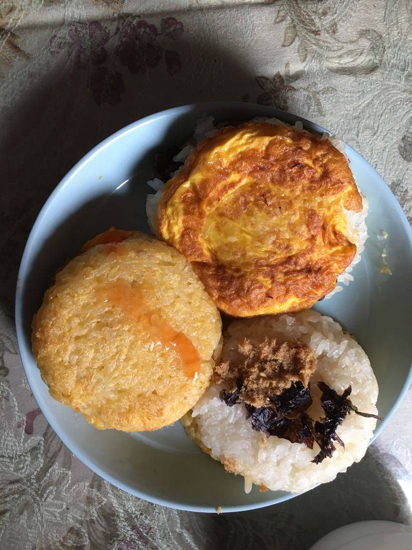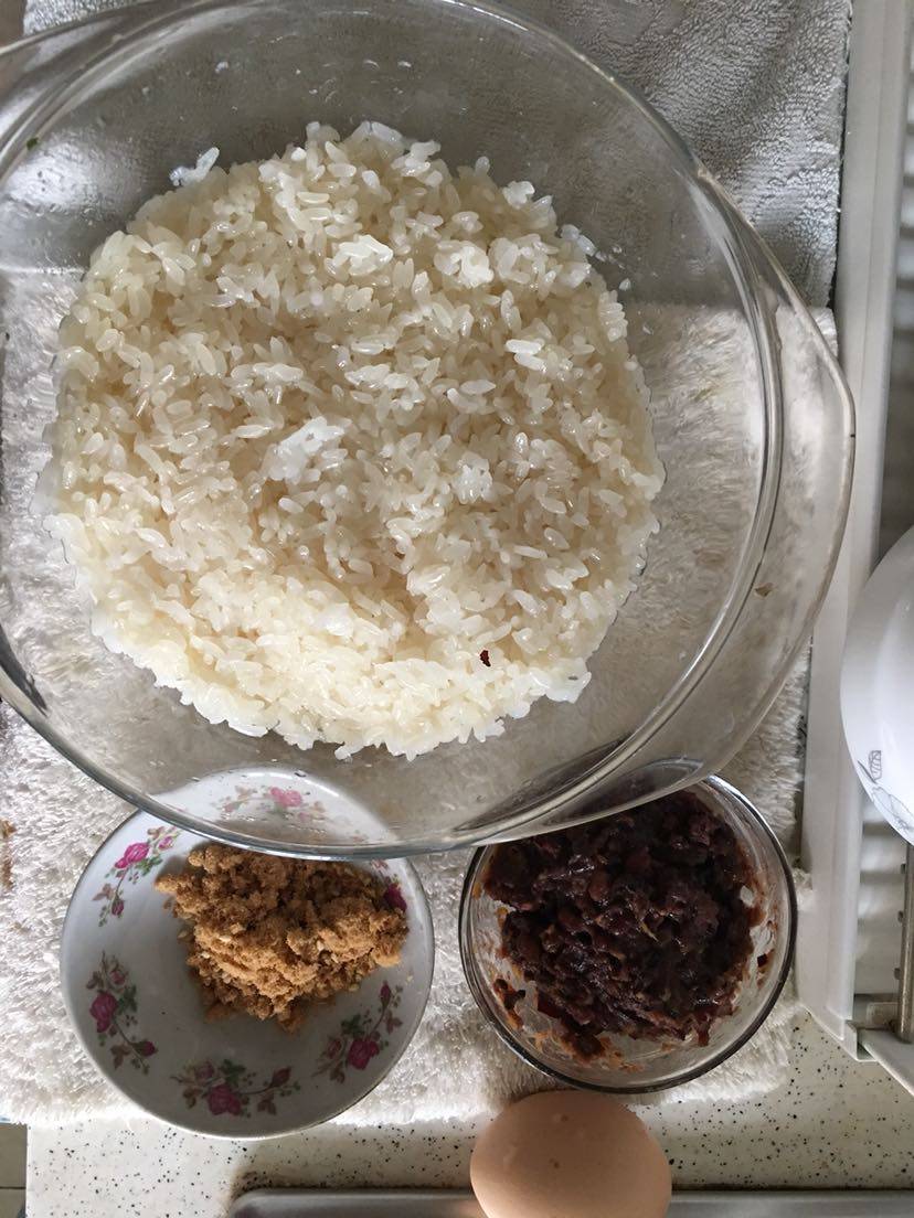 今天的早餐,我在糯米饭中加了红豆做了甜口的,另外也做了咸味的中间夹了鸡蛋,放了点紫菜碎肉松,口感很好👌,上面可以再加点番茄酱和葱花点会更漂亮。