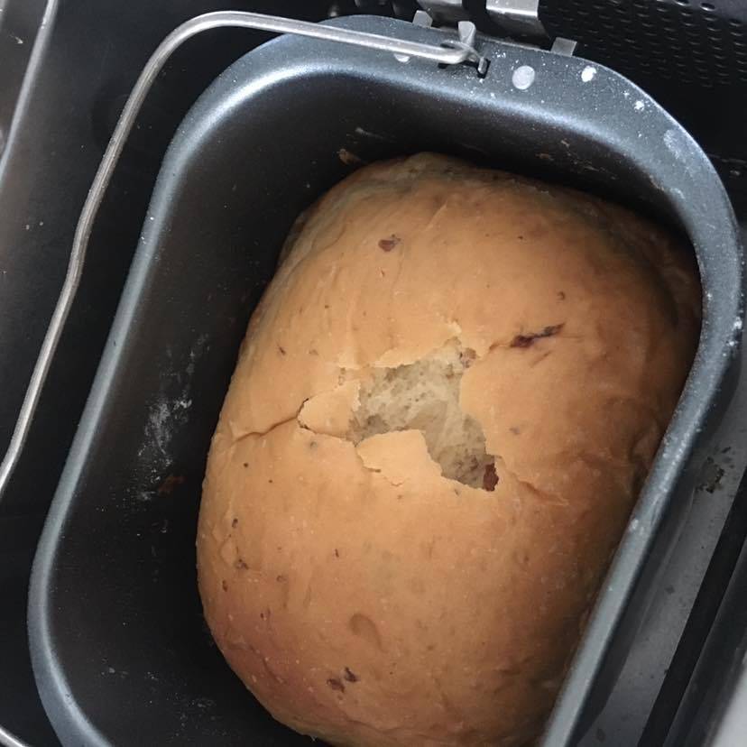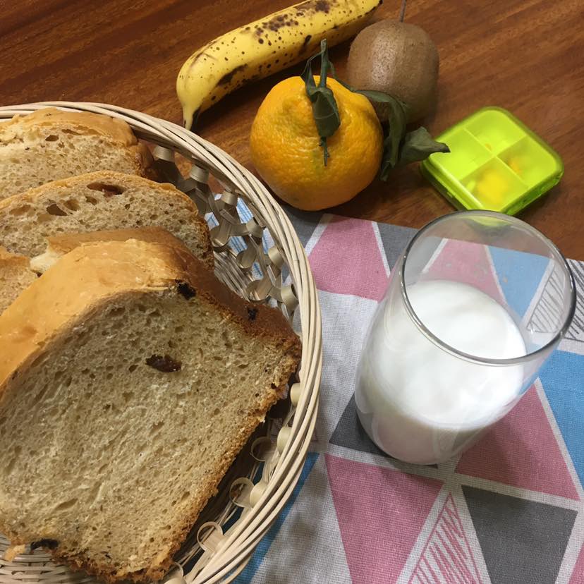 今天哥们约我中午出去吃饭,我今天就休息一天。早餐吃的是哥们昨天晚上做的,无糖葡萄干面包🍞用面包机做面包还是很方便的