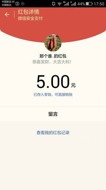 直接发短信过来要为我发微信红包,好感动!加油↖(^ω^)↗