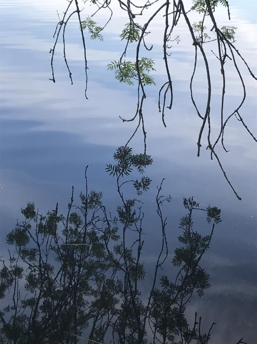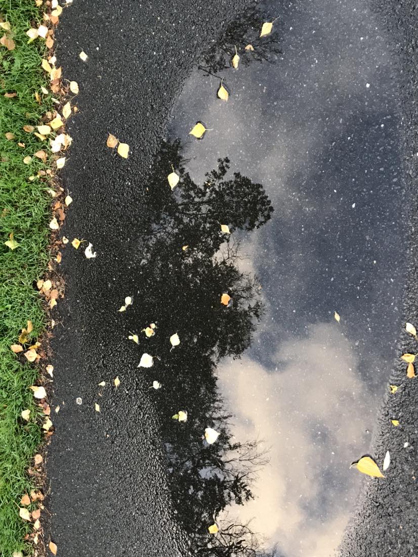 还有一次在路上雨后的积水中看见,树影如东坡,而云影如朱熹。
