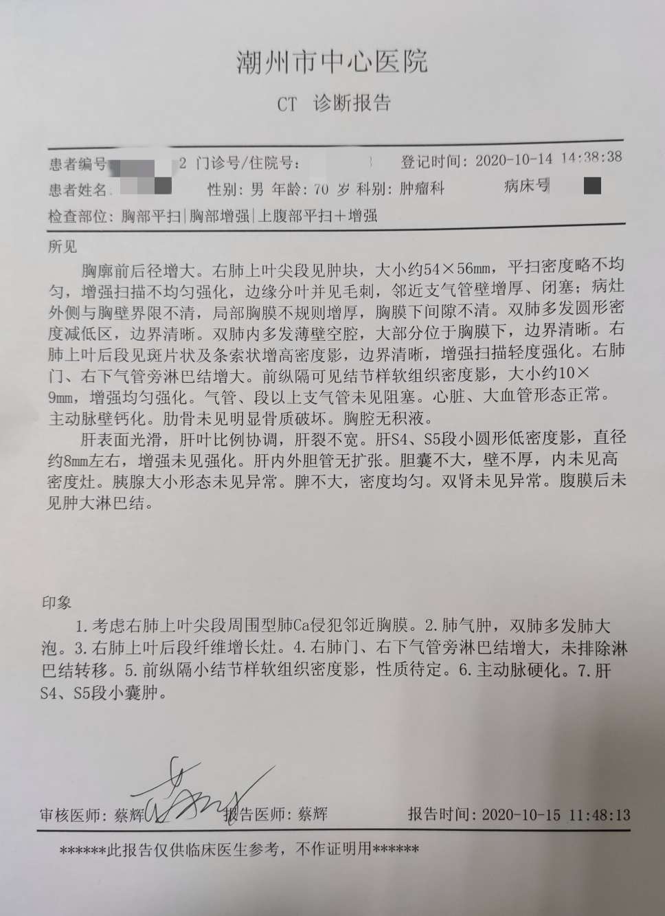爸爸确诊病情已经有11个多月了。一共做了8次大化疗,2次小化疗,以及35次放疗,上月返医院检查“瘤子”没有了。这一路走来,有多少的艰辛与泪水。在这里与大家分享爸爸的治疗过程。起初,拿到病例报告的时候,