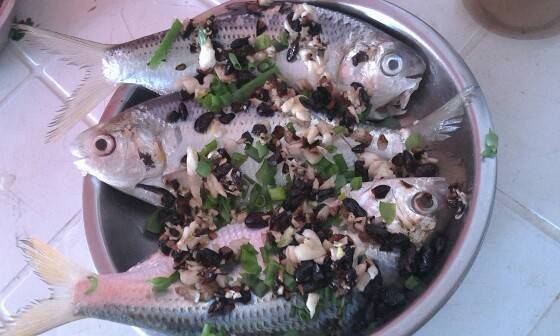 这个鱼可以清蒸,可以用盐腌制后蒸,当作咸鱼吃。下饭很好哦,今天我做的是蒜头豆鼓清蒸,把蒜头豆鼓剁烂,铺在鱼的上面,放点油,盐,味精,撒个葱花,等水开了放下去蒸就可以啦,蒸大约15分钟就出锅。在加点酱油就好了。