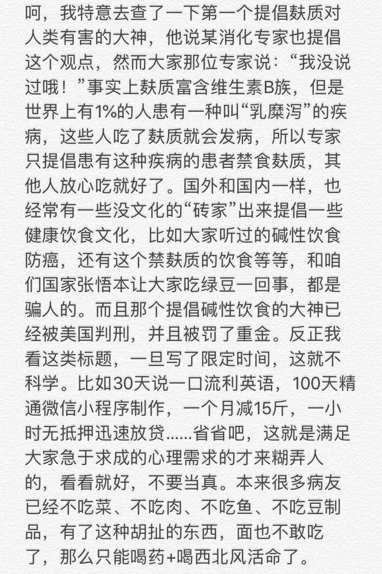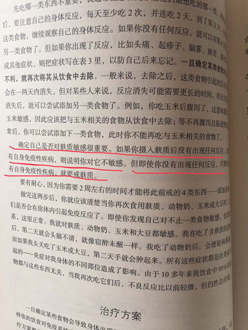 之前在觅健看到有人说《免疫功能90天复原方案》这本书很好,就买了一本来看,书中提倡有免疫系统疾病的人一定要戒除麸质,尽量不吃含麸质的东西,即使没有任何症状。小麦、大麦、黑麦及其制品都是含麸质的,那就意味着不能吃面食了,听起来有点不太可信,又好像有些道理。不知道有谁看过这本书?有什么感受?