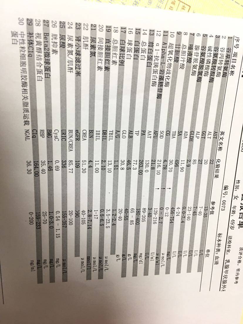 检查结果让主任医师看了说没事,一切正常,锁骨淋巴结超生,乳腺淋巴结超生,腹部超声,胸部CT平扫,肿瘤标志物,血常规,肝功肾功,不过我看着总胆汁酸高,甘胆酸和超氧化物歧化酶也高,姐妹妹看看,这是什么原因引起的