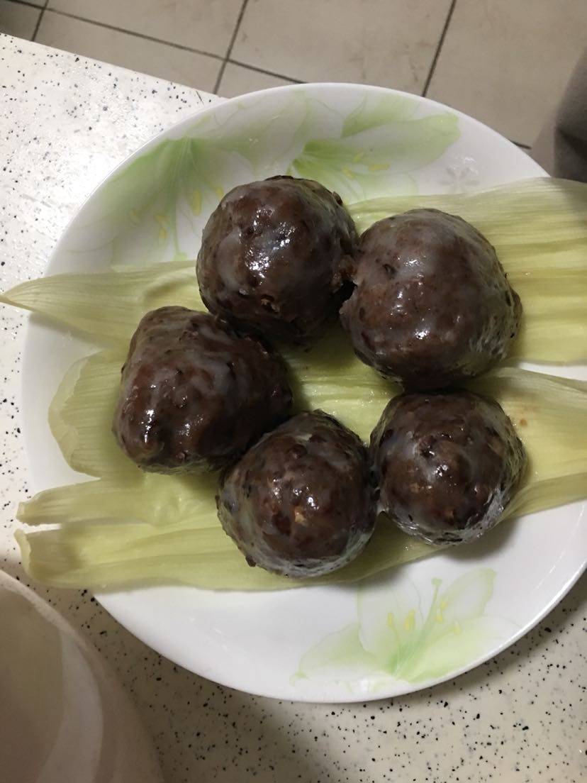 做法:将红豆、花生米、剪碎的红枣浸泡一晚,煮至红豆捏扁就可以了,趁热撒上糯米粉,用手握成团定型,底部用手指按一个洞,再放入干糯米粉中打几个滚,生坯就做好了,放入蒸锅铺上棕叶或者玉米叶防沾,蒸至15-20分钟即可。