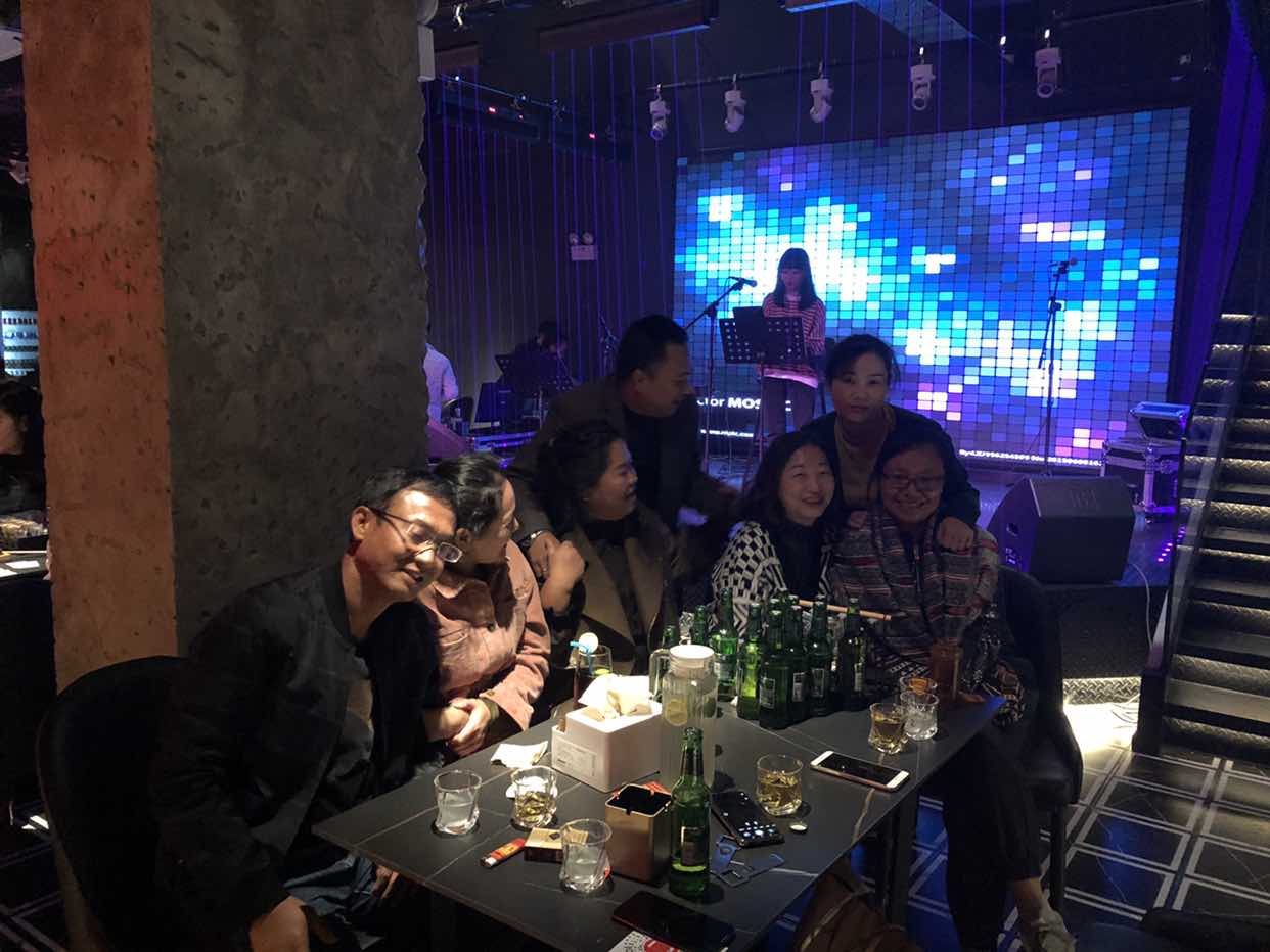 偶尔和高中老同学聚会去音乐酒吧听听歌(我是戴围巾的那个)