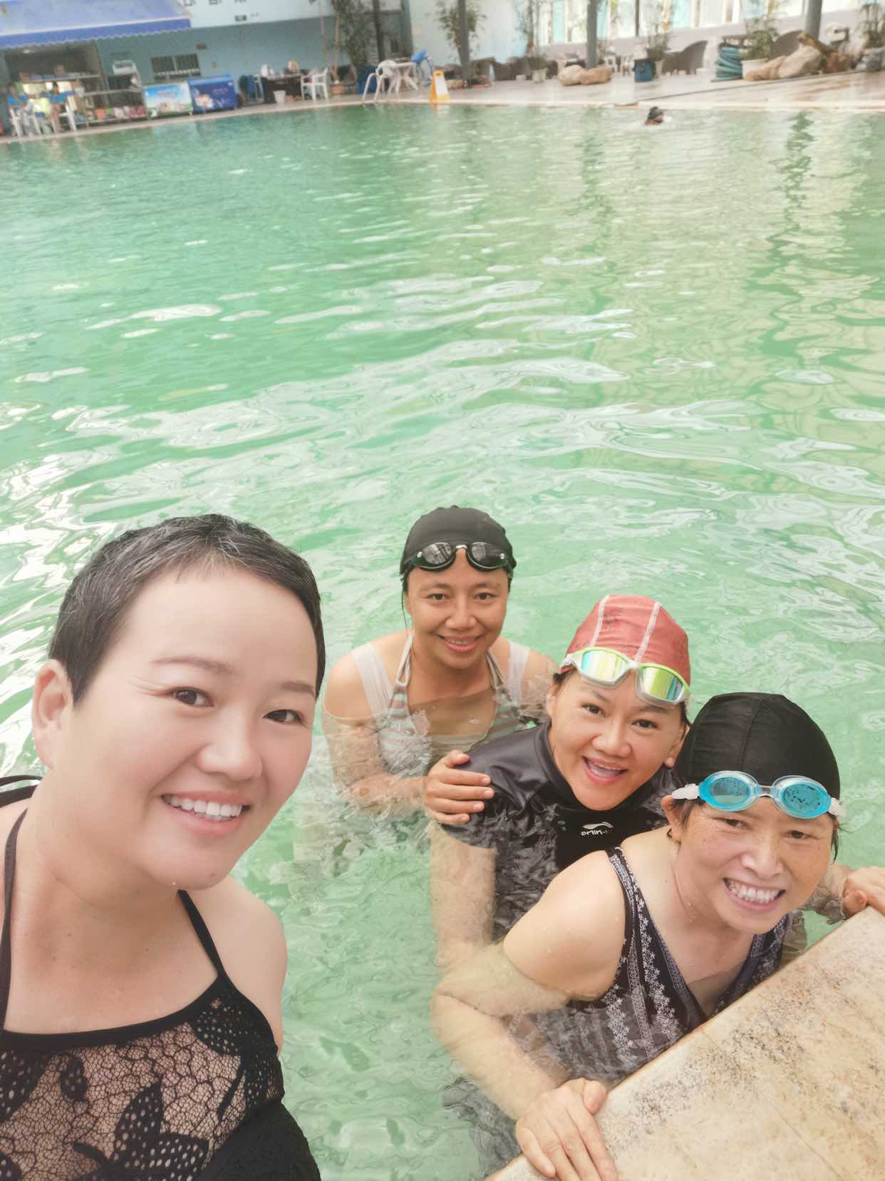 这几个月来我最大的变化就是学会了游泳,这是我做梦都想不到的。那是9月中旬的时候,和两个病友聚会聊到了游泳,她俩都会游,于是相约第二天就去温泉游泳馆游泳。第二天在泳池边我就下定决心要把游泳学会,于是就马上请了一个教练。下了泳池,原本非常怕水的我,却非常胆大地在水中开始按照教练要求做一系列动作,一天下来已经掌握了闷水了。此后的十来天,我每天都勤学苦练,虽然我悟性不高学得挺慢的,却也终于在第十天会像模像样地游一小段了!之后,慢慢尝试游深水区,逐渐加快速度,不断改进动作……三个月后的今天,我已经能够不停歇轻松畅游十几圈,并且还自学学会了仰泳,抬头蛙泳和踩水也已经熟练掌握。