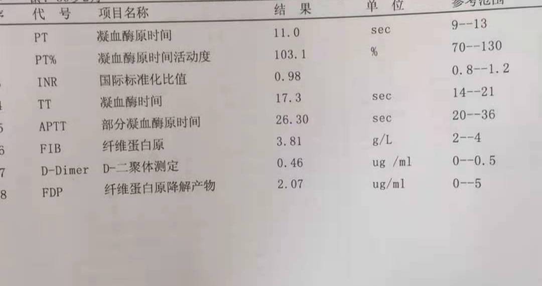 化疗期间抽血检查,要求医生开单检查的指标要包含凝血指标,这些指标一般不会包含在化疗验血指标里。特别是有胸闷、腿部肿痛症状的,要高度警惕。