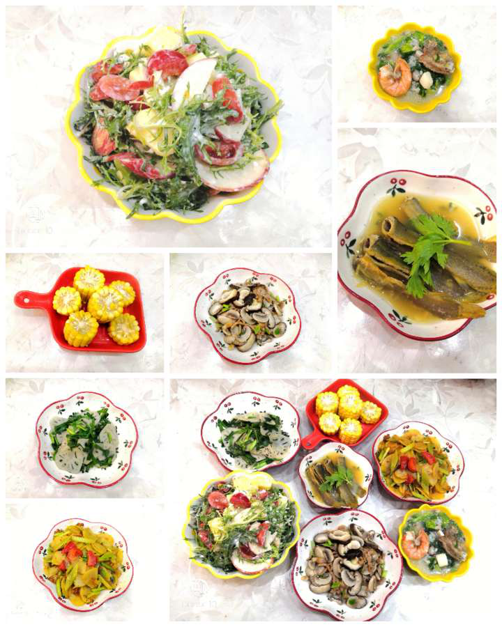 没有远大的理想,也暂时到不了诗和远方,但我们可以期盼平安喜乐健康,留下琐碎的小美好,给平凡的生活增加一丝亮光。有趣的事都藏在小日子里,每天不一定灿烂但一定要热爱,生活的温度取决于我们对它的态度,需要自己不断的调剂。对于美食,喜新不厌旧挺好。今晚盛行乱搭风,晚餐分享:老酸奶拌蔬菜水果(苦菊、甜椒、苹果、凤梨、圣女果)、藕片炒韭菜、香菇白蘑菇炒肉丝、土豆片莴笋芹菜红椒混炒、清蒸泥鳅、海虾排骨白菜粥。