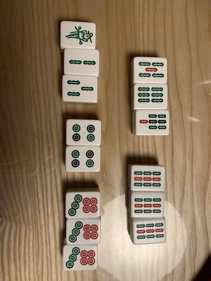 仔细看还不是麻将桌,放着一块绿色的布就打麻将😂