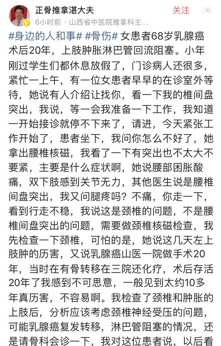 这位医生太有责任心了,真难得!术后二十年的大姐真了不起!
