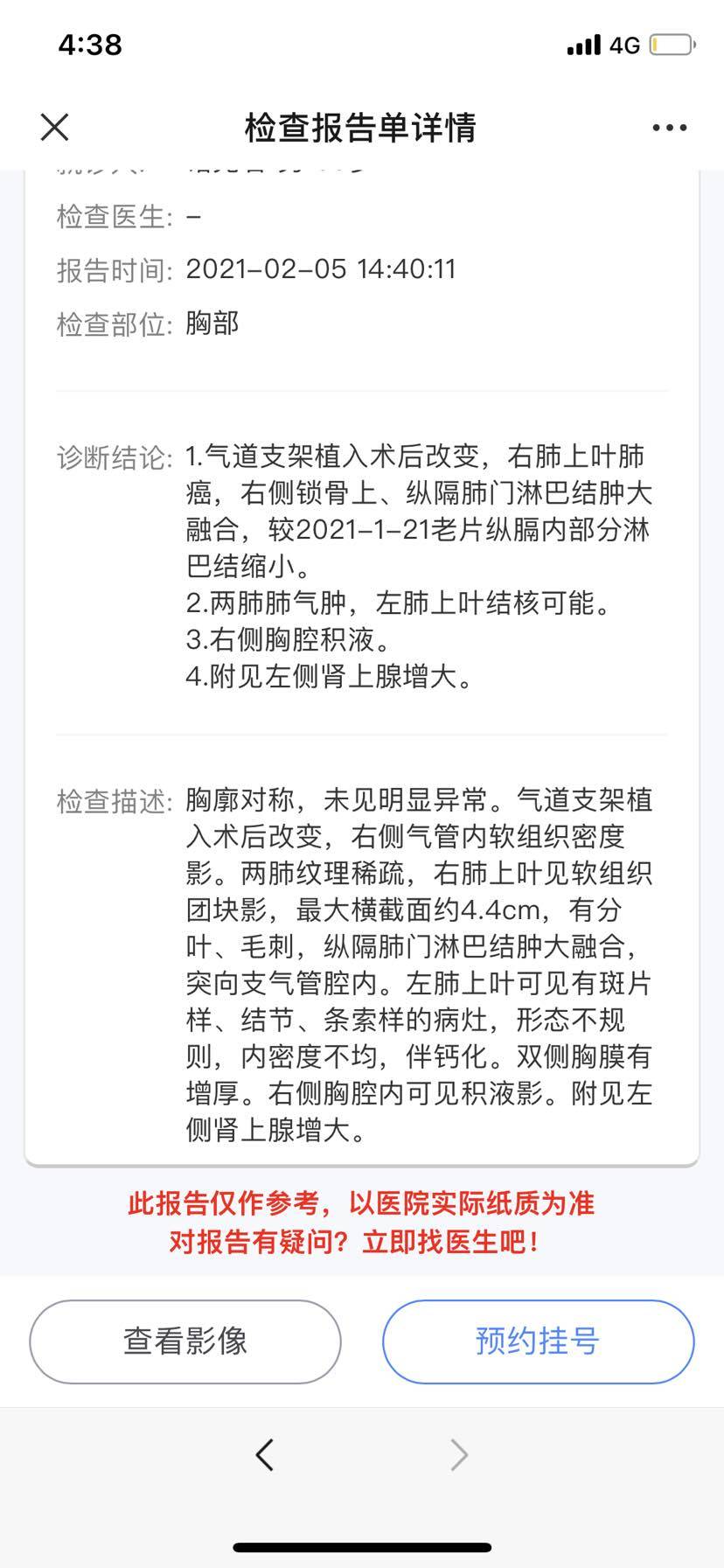 庆幸这次的年终考总算取得了一个阶段性的小胜利,ct显示纵隔内部分淋巴结缩小,自己认真对比了片子确实是肉眼可见的明显缩小了,最让我担惊受怕的气管压迫缓解不少!