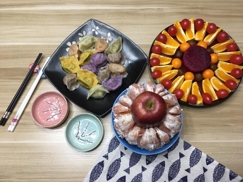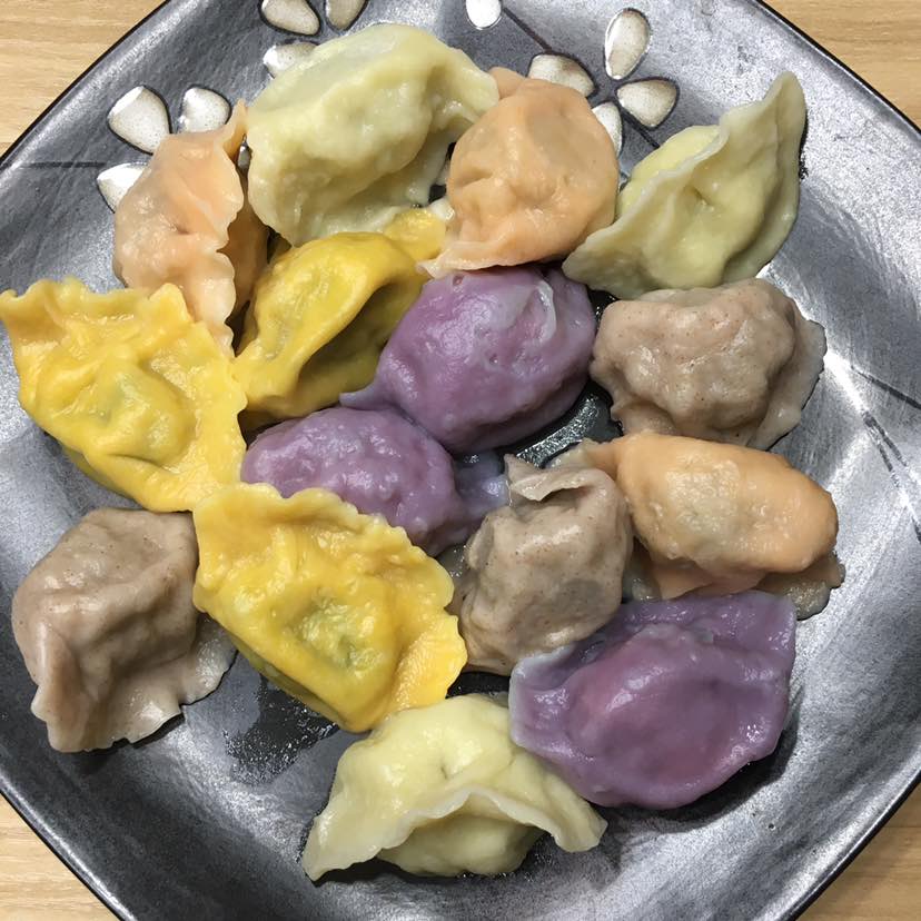 年三十晚上的饺子是我提前包好的冻饺子,五种颜色,五种不同的馅料。