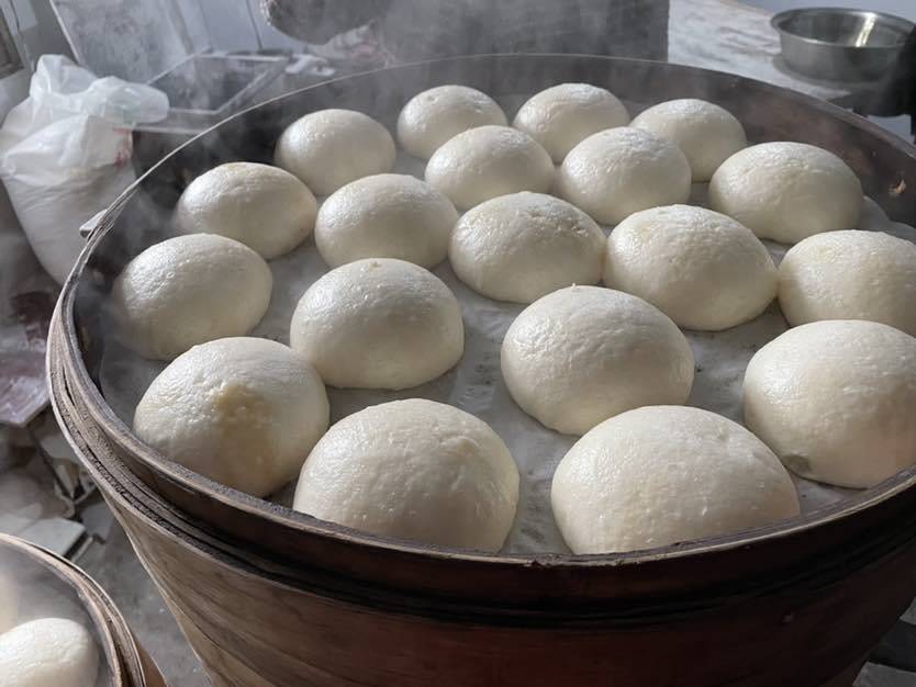 这一排蒸笼都盖好了才回来的,这只不过是店里的一小部分。